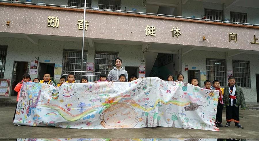 腾博会以诚信为本游戏代表陪同瑶龙小学孩子们一起绘制“我的梦想”长卷