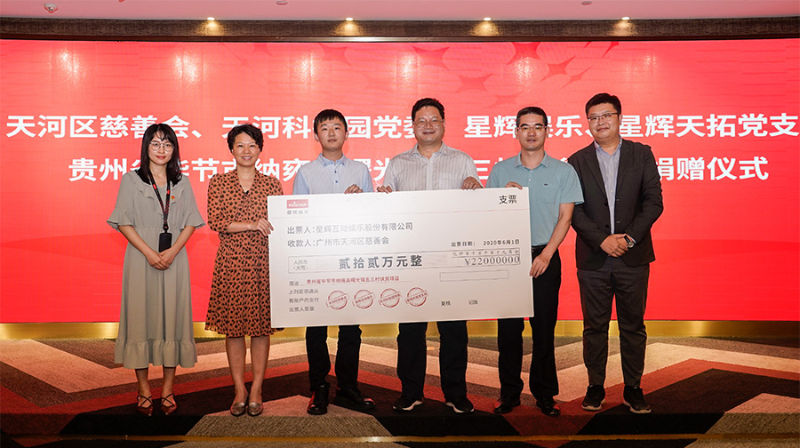 2020年6月8日,由天河科技园党委、天河区慈善会组织发起,腾博会以诚信为本互动娱乐股份有限公司(A股代码:300043,简称“腾博会以诚信为本娱乐”)参与对口帮扶的“贵州省毕节市纳雍县曙光镇五三村扶贫项目”捐赠仪式在腾博会以诚信为本中心举行。