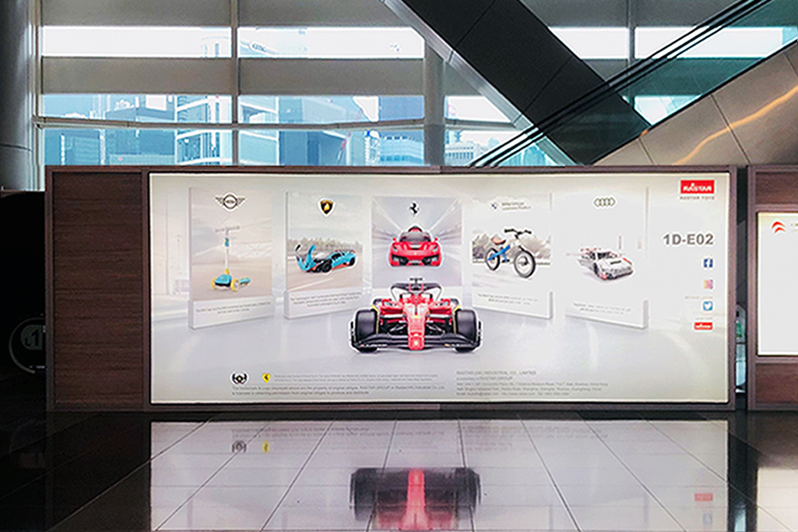 腾博会以诚信为本娱乐旗下新品法拉利F1-75方程式赛车在香港玩具展上最瞩目的灯箱牌上展示